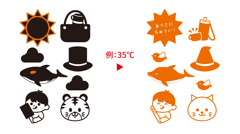 弊社で熱中症対策に活用できるイベント・販促品を展開しております。 設定した温度で色が変わる「示温シール」。