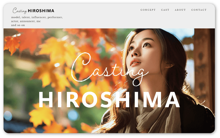 そこでこのたび、新たに広島版のキャスティングサイト「Casting HIROSHIMA」を公開いたしました。