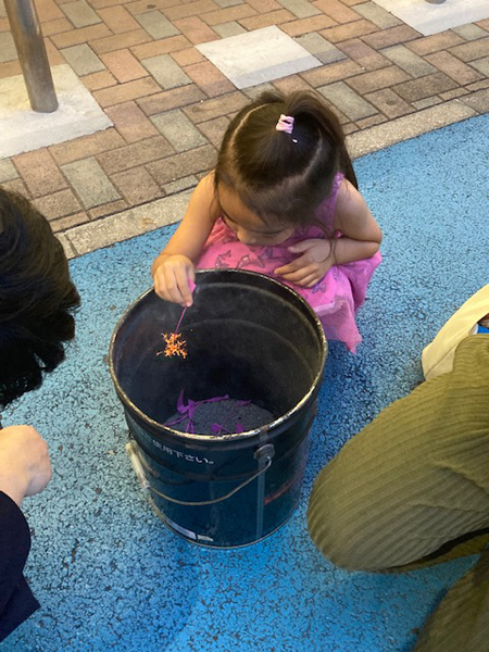 みなさん、自分が作った花火を集中して真剣に燃やしていました。