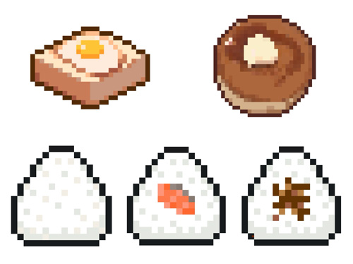おにぎりの具は塩、鮭、おかかです。 ↓これはフリー写真をモデルに描きました。